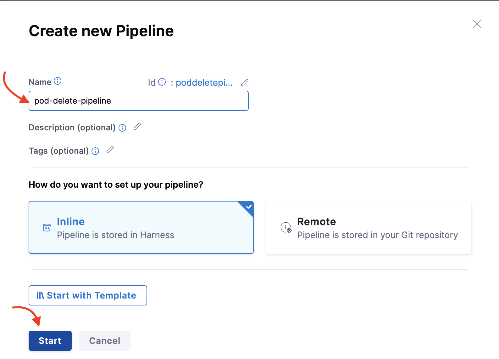 2. Provide a name, and click Start.