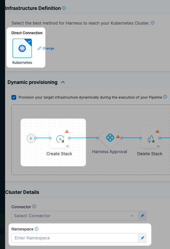 - If you will deploy directly into the provisioned resource as part of the deployment target, you need to provide the required Infrastructure Definition settings so Harness can target and deploy to the provisioned infrastructure.