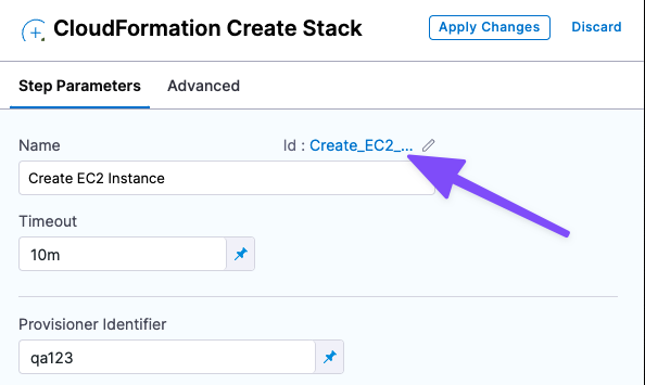 In the CloudFormation Rollback Stack step, in Provisioner Identifier, enter the same provisioner identifier you used in the Create Stack step.