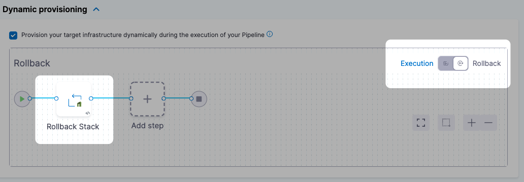 When you enable dynamic provisioning in a CD Deploy stage's Environment settings, Harness automatically adds the necessary Harness CloudFormation steps: