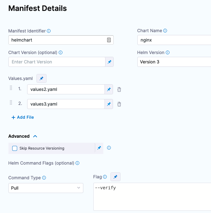 - Harness can fetch the list of chart versions for a respective Helm chart. These versions can be passed at runtime as a parameter into the service.