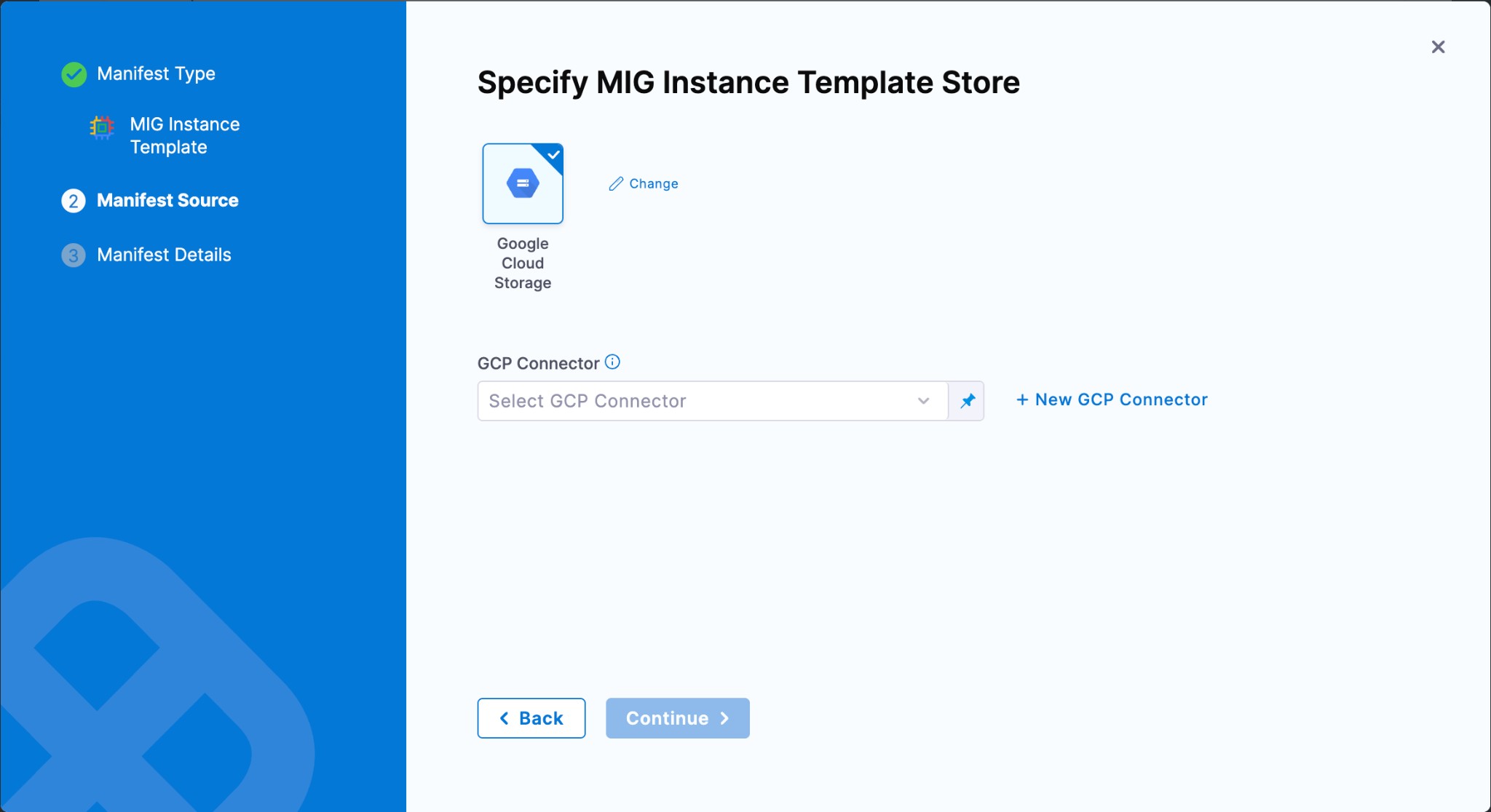Select GCS as the manifest store