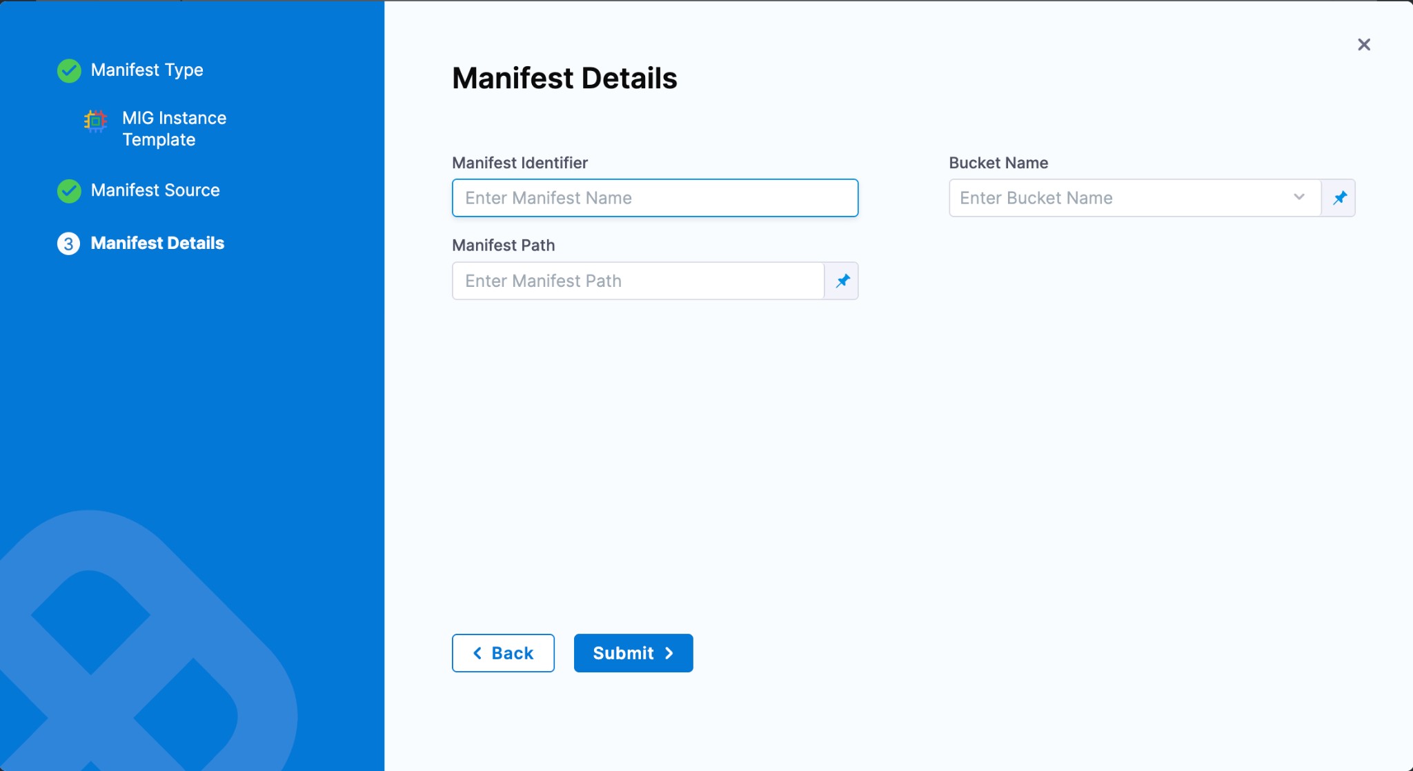 • Manifest Path: The path to the JSON file inside the bucket (e.g., mig/templates/instance-template.json).