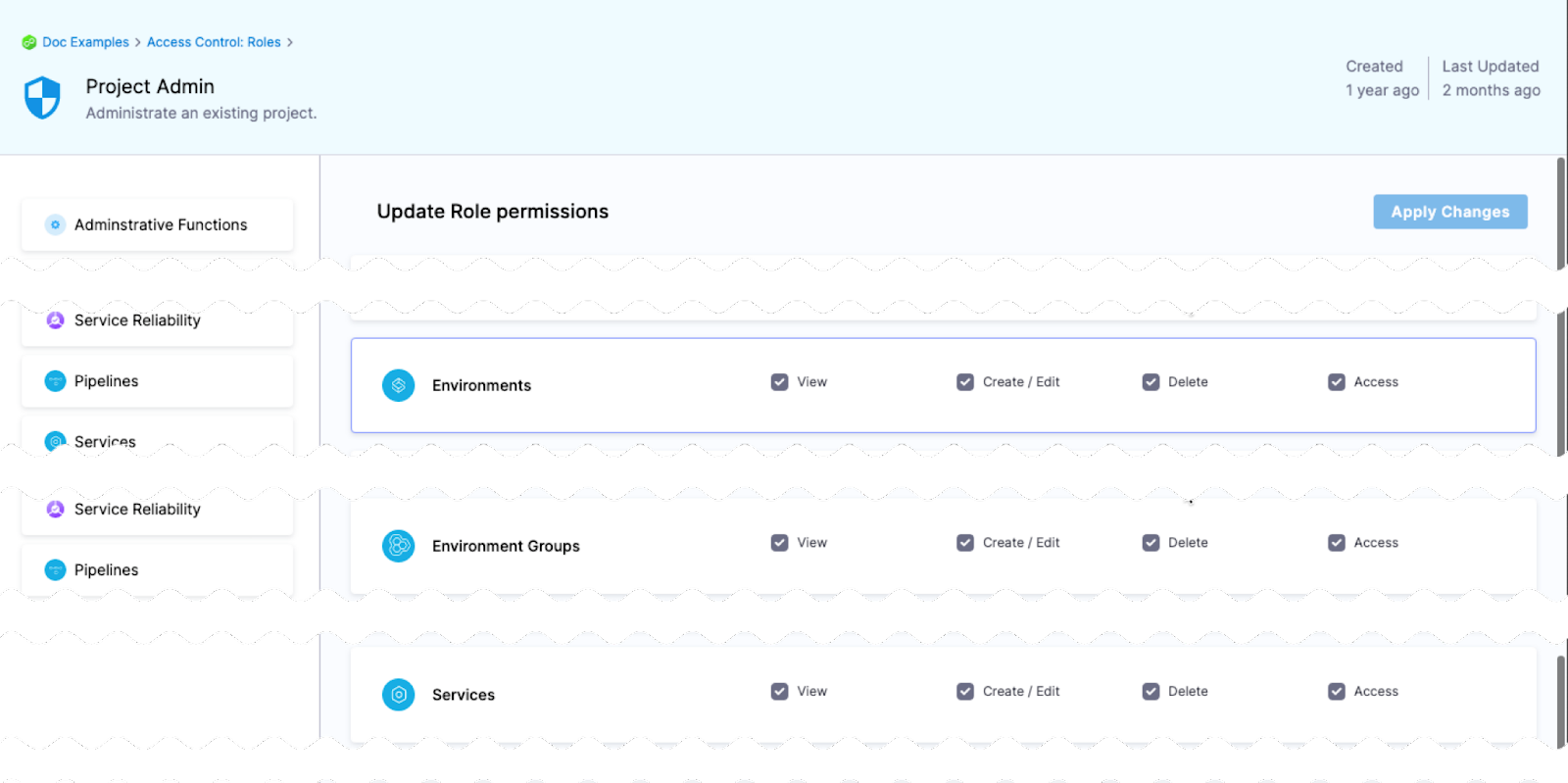 Go to RBAC in Harness for examples of RBAC use cases for services.
