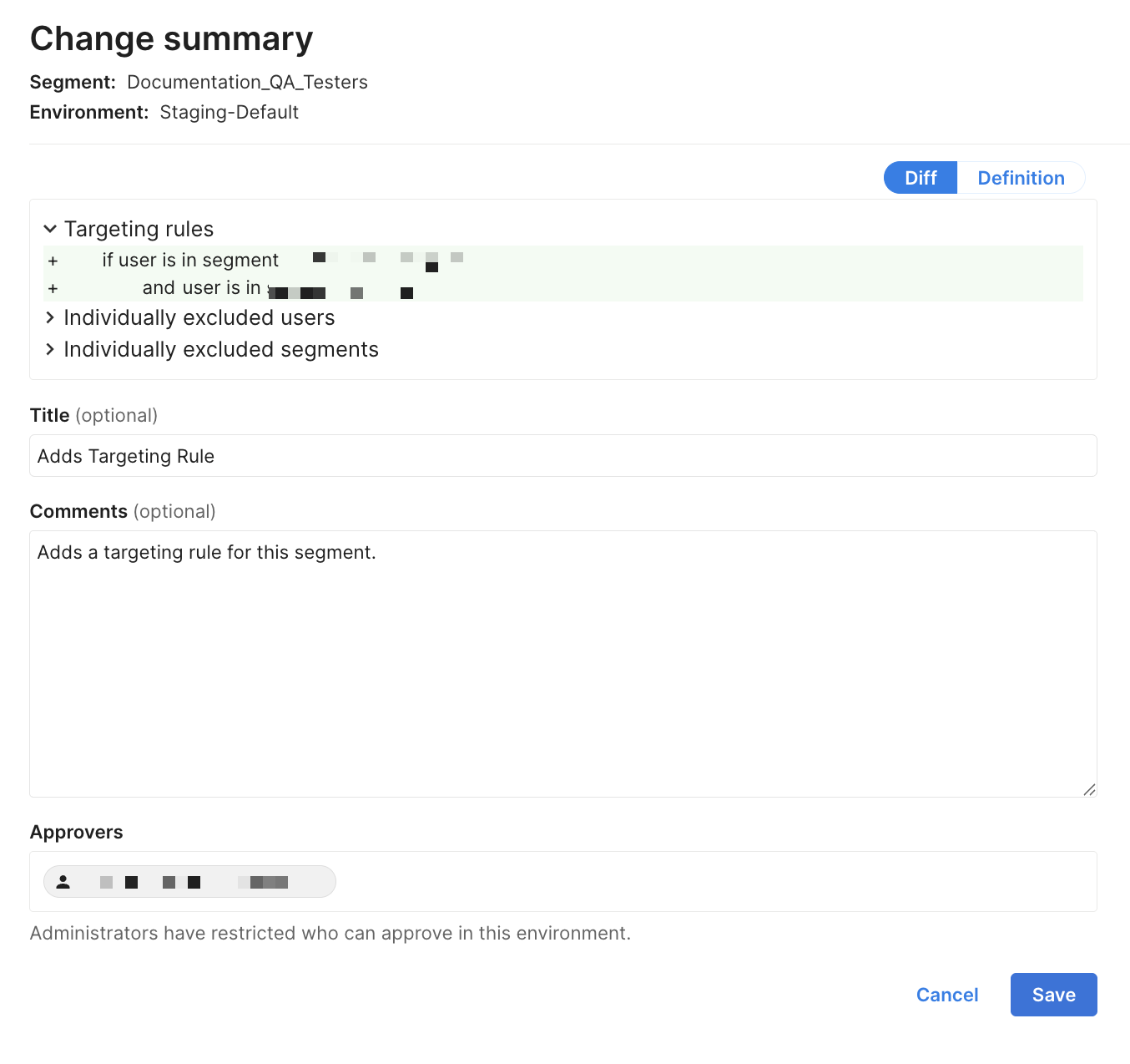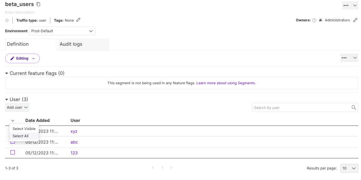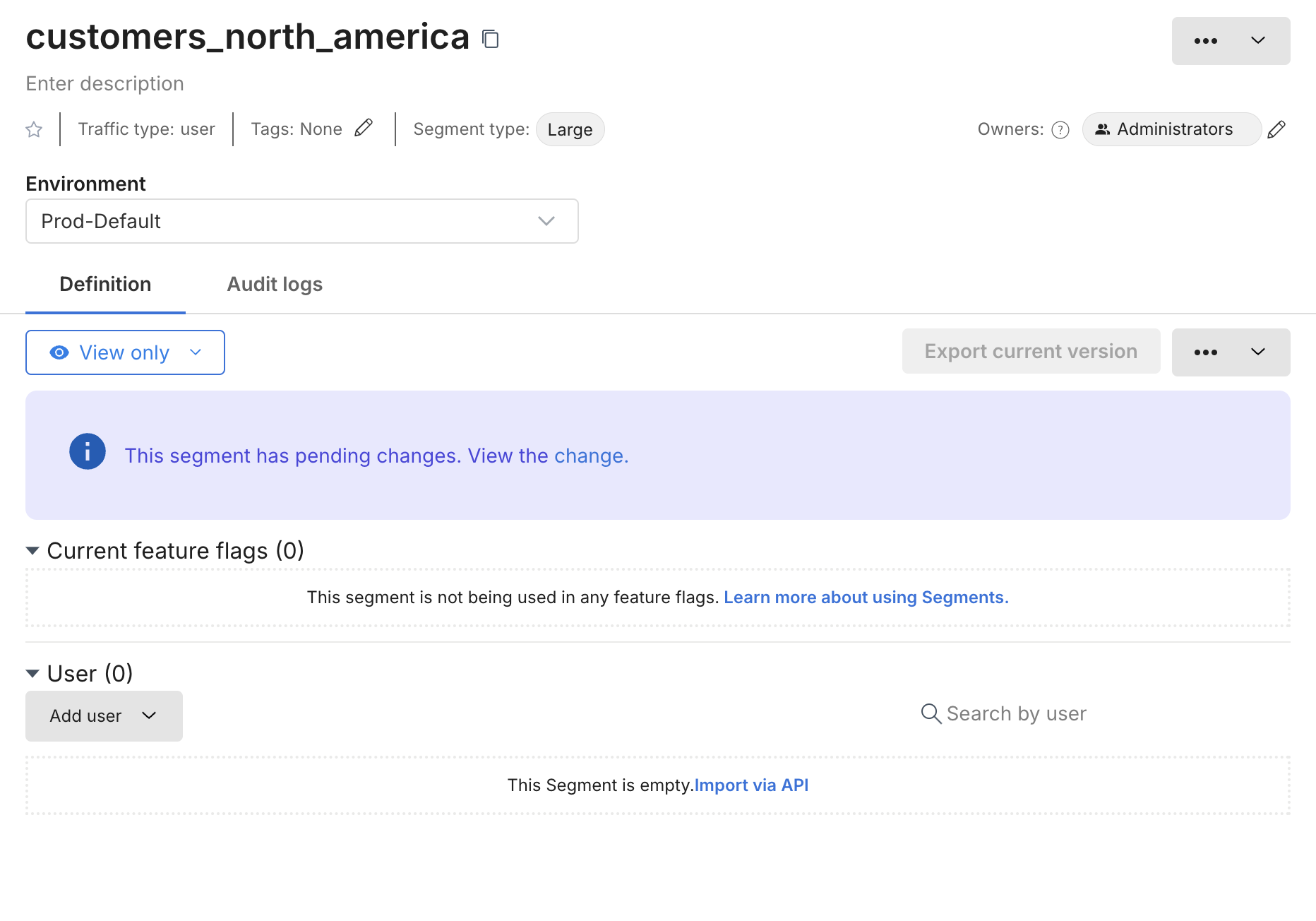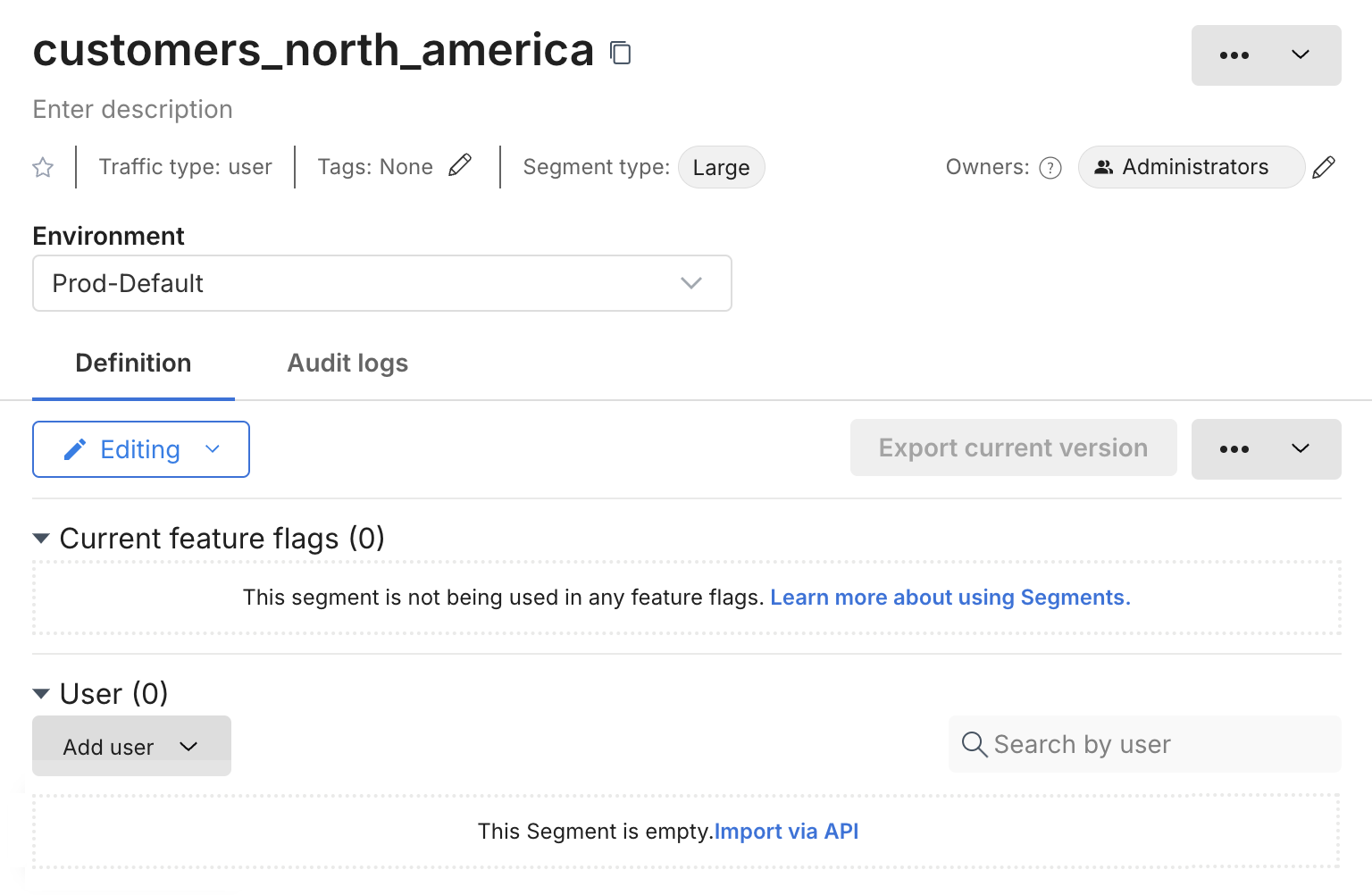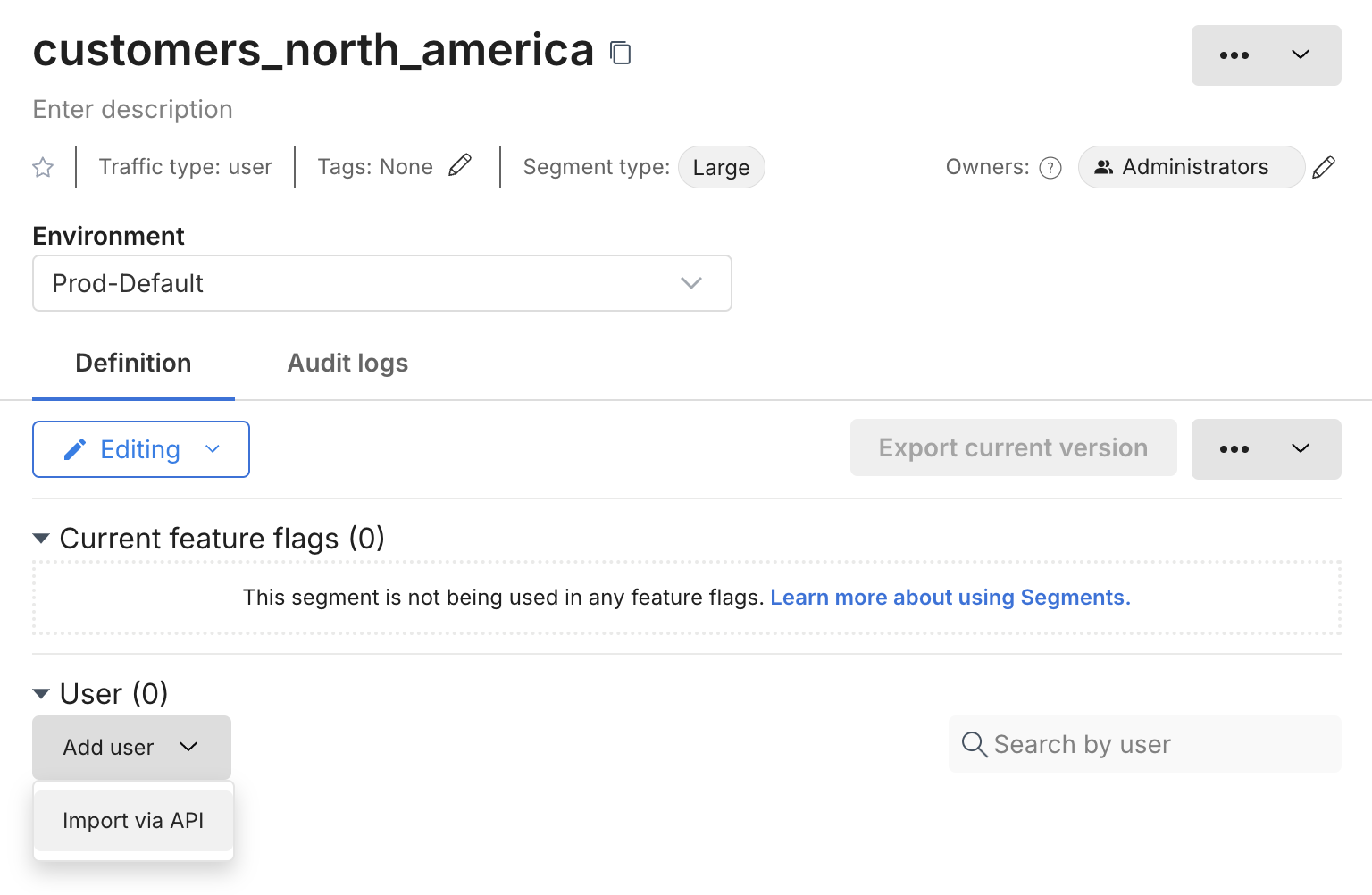 - Segment definition, where you can define and manage user membership for each environment
