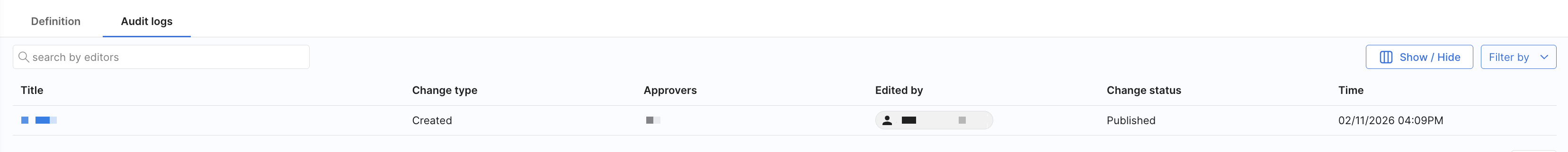 After saving, your changes are recorded in the Audit logs tab.