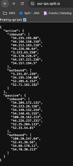 This list may change in the event of a failover, so we recommend subscribing to Split's Status Page for updates.