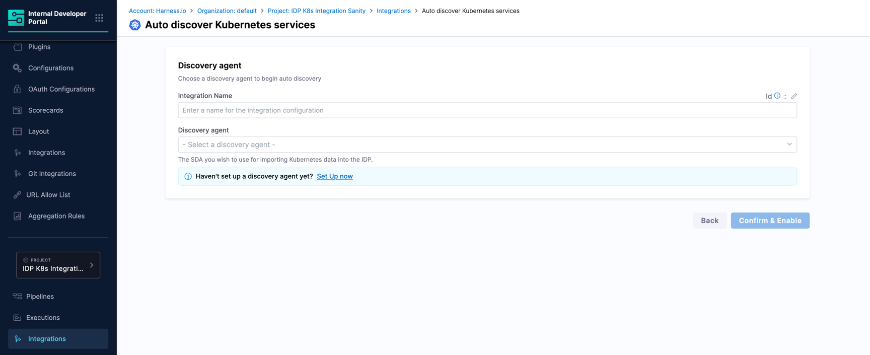 This section is intended to help you attach a discovery agent required to pull information about your Kubernetes services into the IDP.