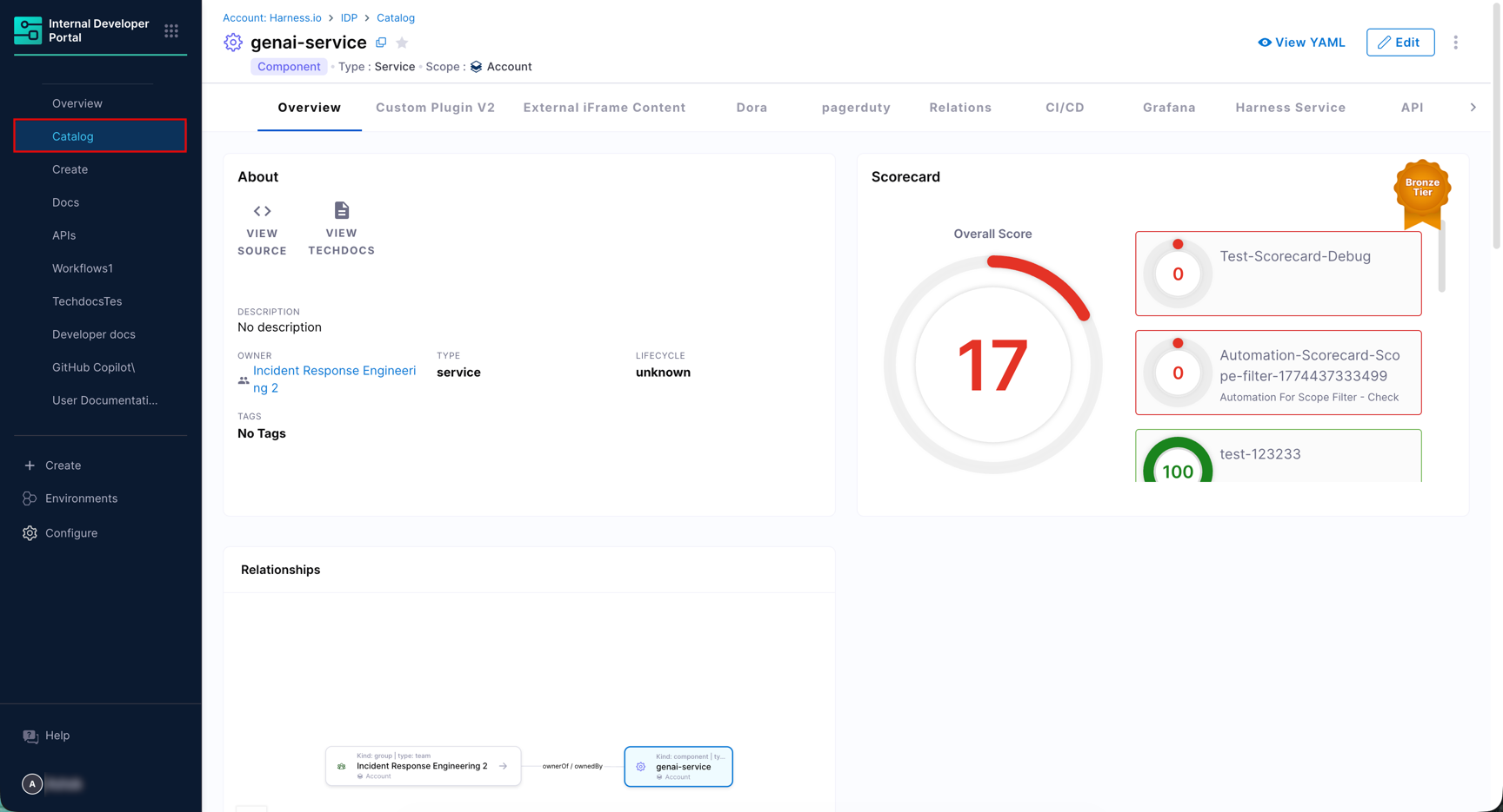 Figure 10: IDP Catalog Entity Page showing Service/Team Relationship