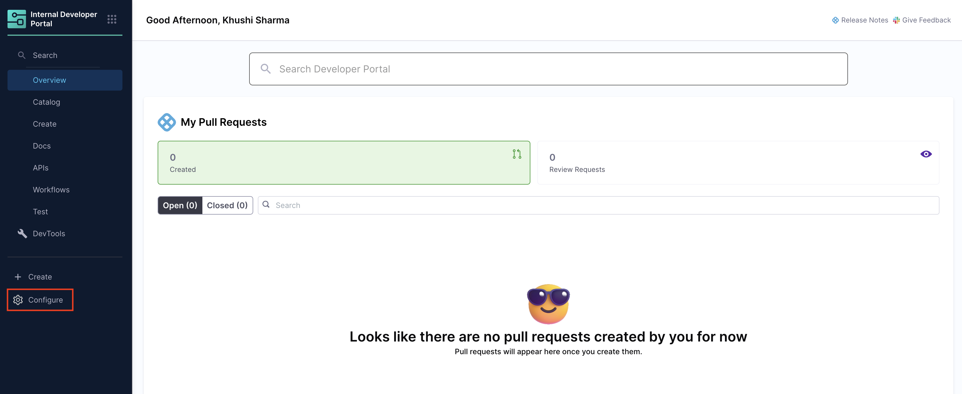 1. Navigate to Harness IDP and click "Configure" from the main menu.