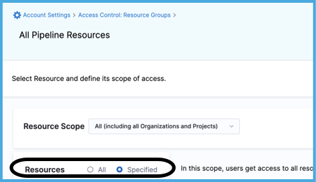 • Specified: Select specific, named resources in this category that are within the Resource Scope, such as specific pipelines.