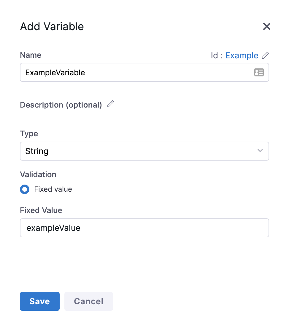 Enter a name, select the variable type, and then enter a value.