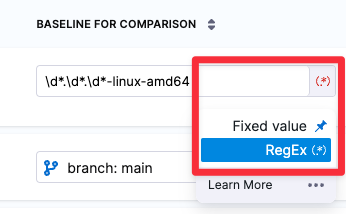 • You can specify a baseline using a fixed value or a regular expression (RegEx).