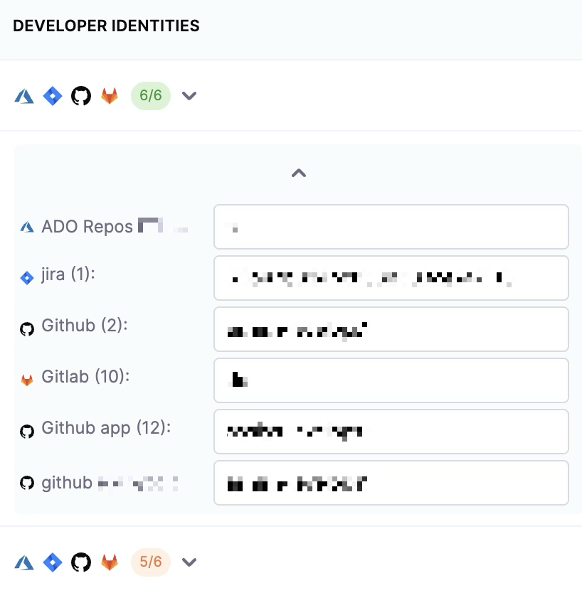 This step is mandatory for productivity metrics, and mapping must be kept up-to-date in Team Settings to ensure metrics are accurate. You can automate this step using Auto Identity Discovery, which reduces manual mapping by correlating developer identities across supported integrations.
