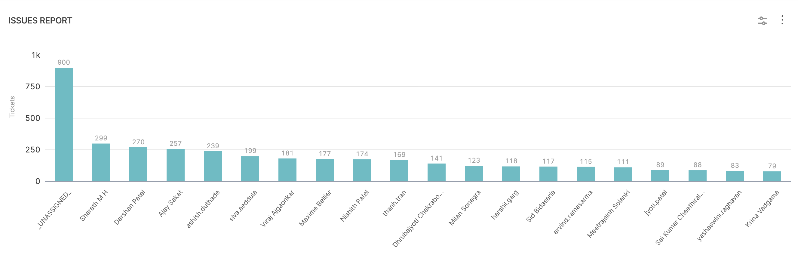 • Issues By First Assignee: Analyze who receives the most "first assignments" for issues.