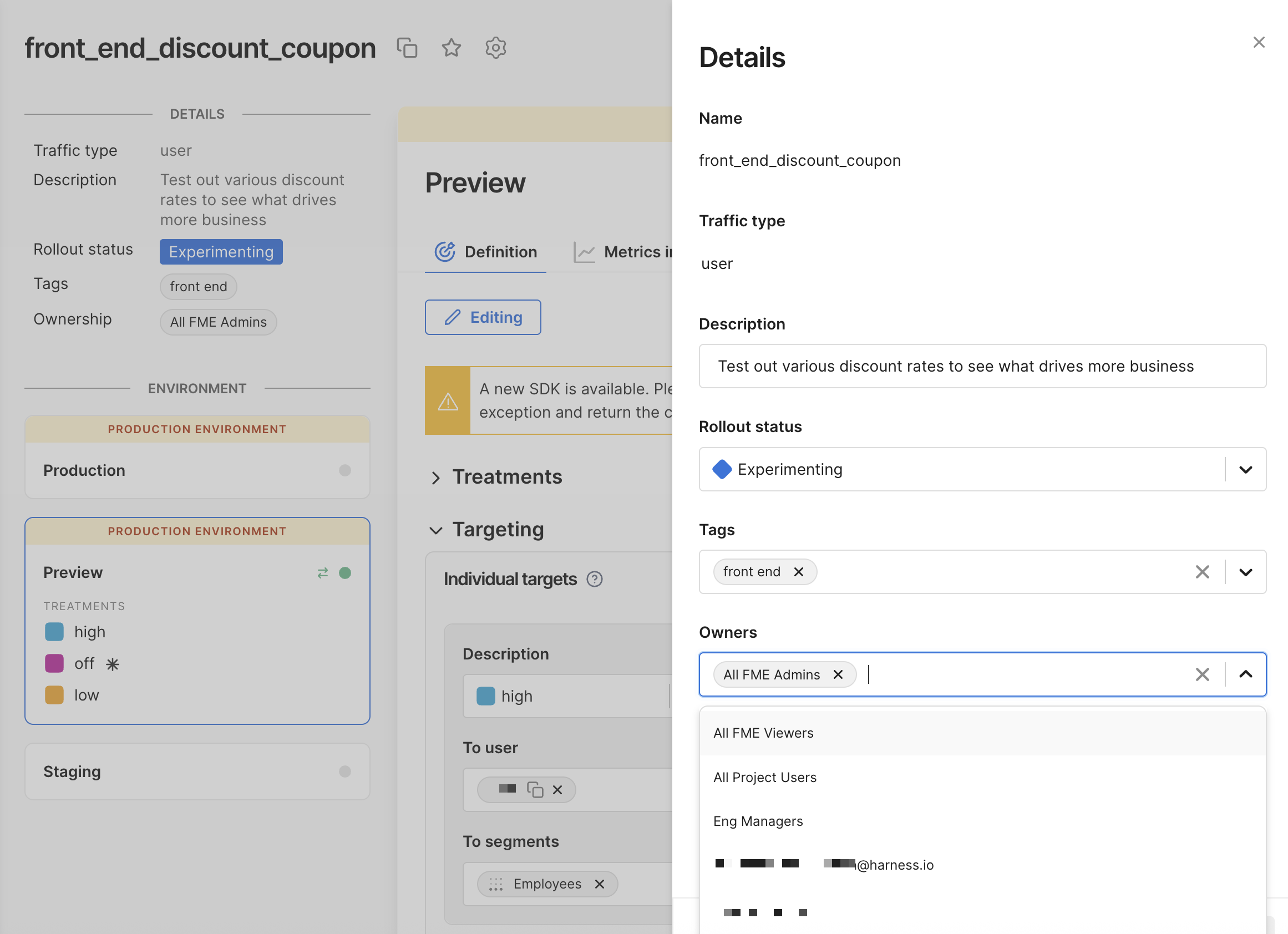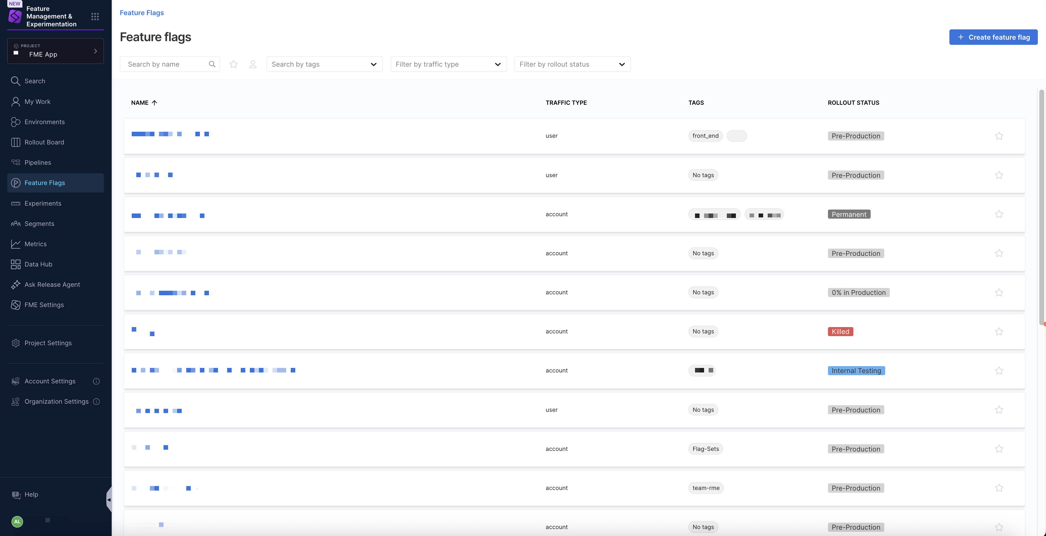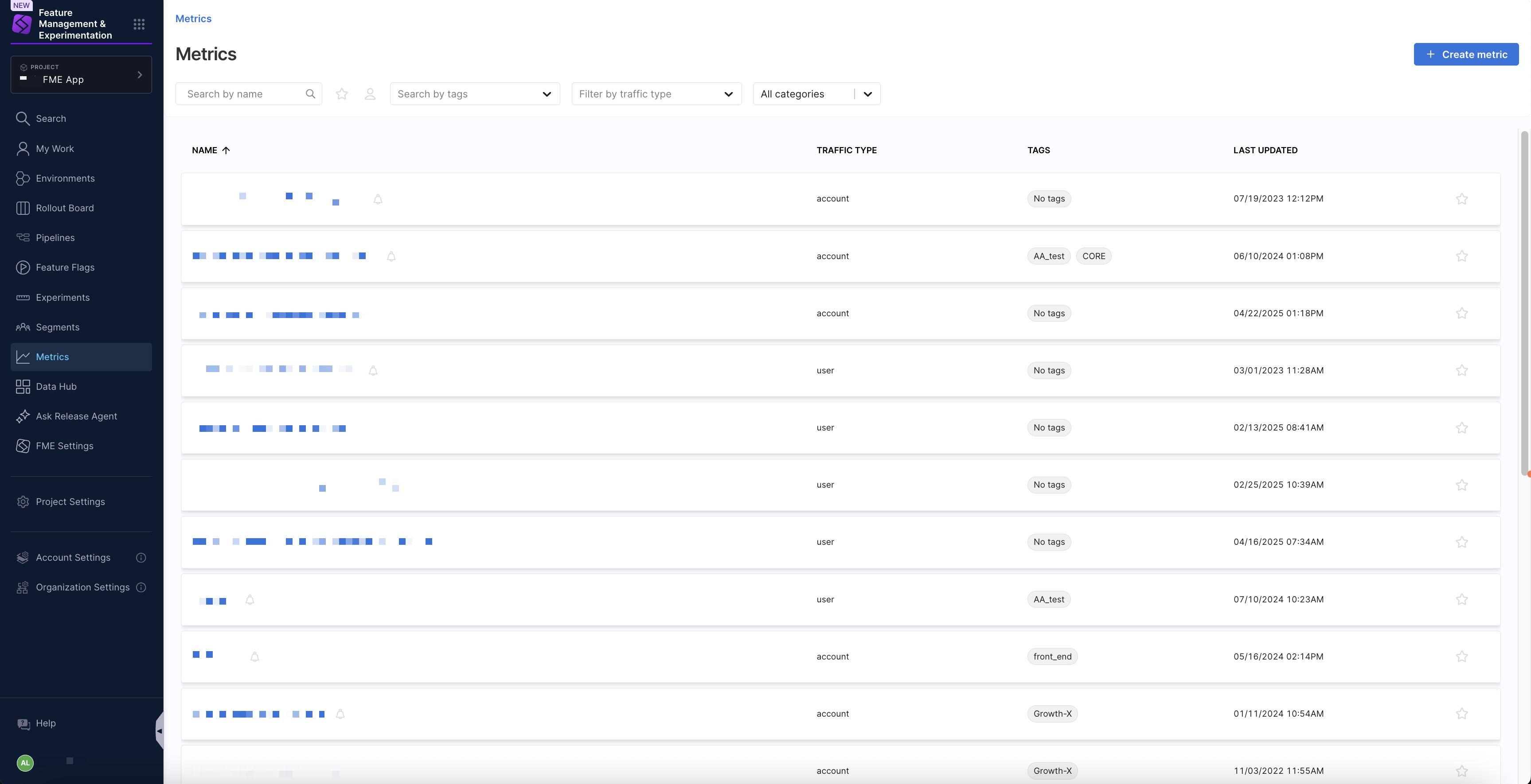 Harness FME has improved the browsing experience for feature flags, segments, and metrics by replacing the browse panels with full-width list pages, consistent with other Harness modules.
