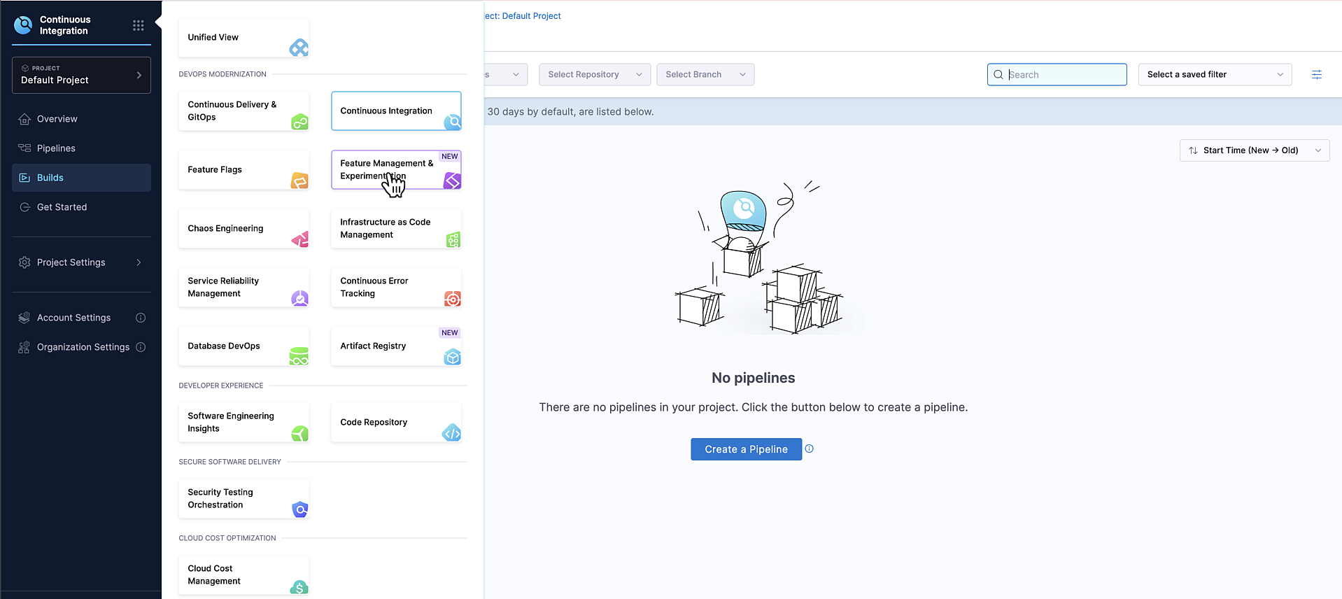 - Create Feature Flag, Update Feature Flag, and Delete Feature Flag for managing the full feature flag lifecycle as part of a pipeline