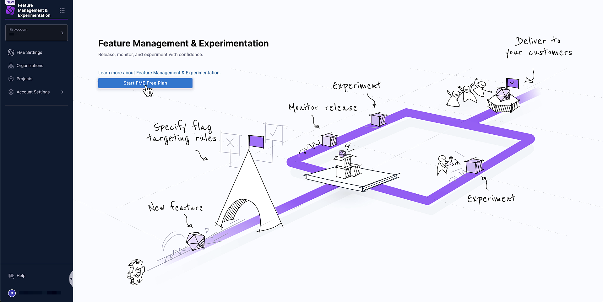 Then, select Start FME Free Plan. This step initializes FME for your account and is required for all Harness customers.