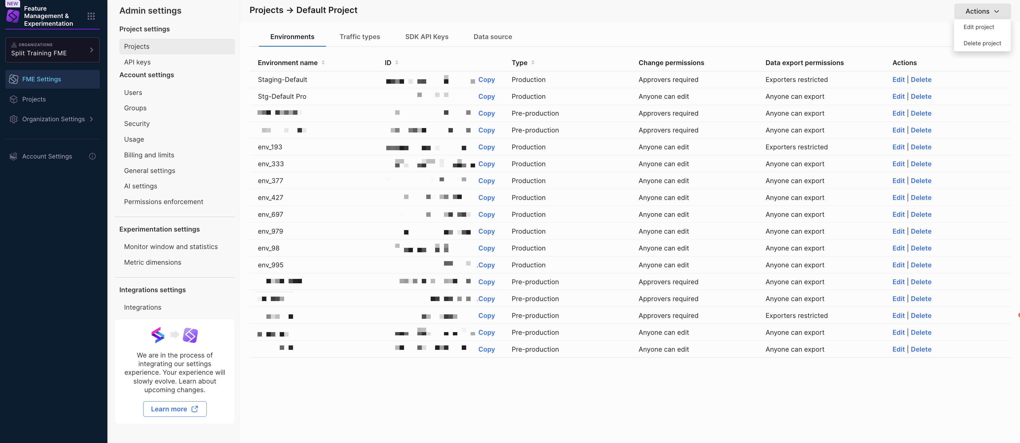 Users can now scope Admin API keys down to one or more environments in a workspace. With a scoped down API key, engineers can now create automation and jobs for their specific needs without needing to worry about accidentally making changes for splits and segments in other environments