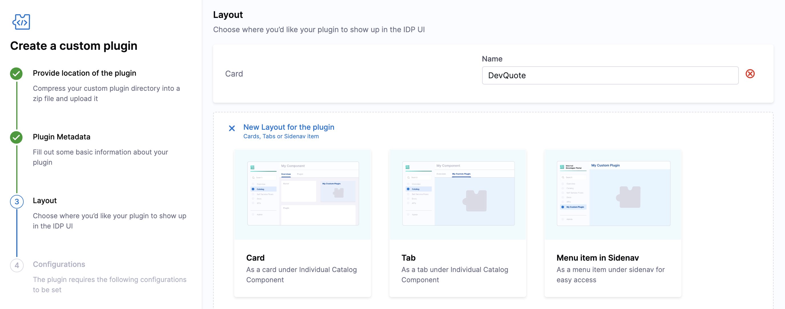 .tgzrequired. - Preview the plugin live against a selected catalog entity using Dev Mode before confirming.